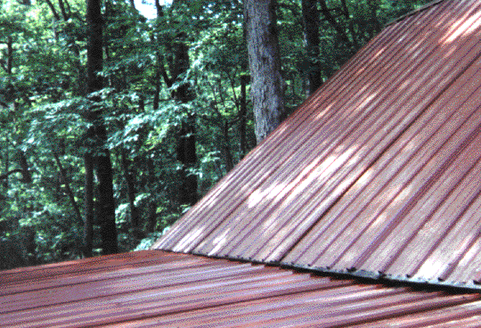First, let's prove that the porch roof has our trademark 50-year red metal roofing. We had to climb up there for this photo since there seems to be no other place to see that roof top except maybe from a hot air balloon floating down the river gorge