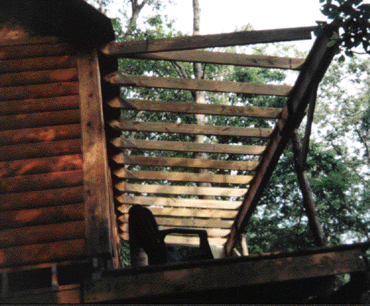Then porch rafters were extended out from that beam and tied to the extending rafters of the main cabin's roof.
