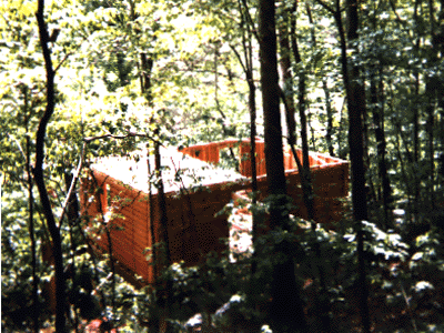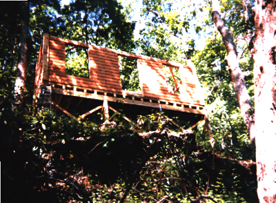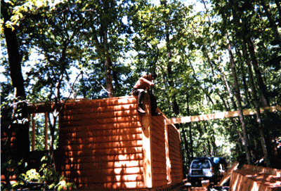 So here was the cabin by the end of Day 2. Openings for front door and windows looking out over the bluff/river scene.