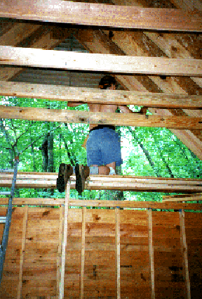 The loft is closed in and cozy. Now let's finish the closing in of the cabin by building the eave in the open area of the cabin.