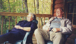 Even though we did get to share a meal at Lulu's, and look through the Dogwood Crafters shop in Dillsboro, the visit to the cabin ended all too quickly. In fact the week of learning EMail and Canasta on the new computer sped by at a fast pace, too. Before we were ready, the computer was packed in a carry-on box and they were off to Nashville to visit a little more civil-war history and any other relatives they could uncover. But as they left we could see the little thought-clouds above their heads as each remembered a favorite spot: