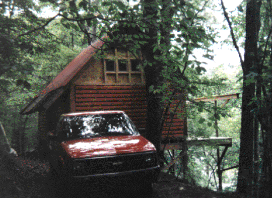 (You also might note the extension of the rafters on the back side of the cabin on your left. These were later shortened and more red roofing added to extend the backside overhang.)