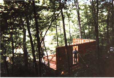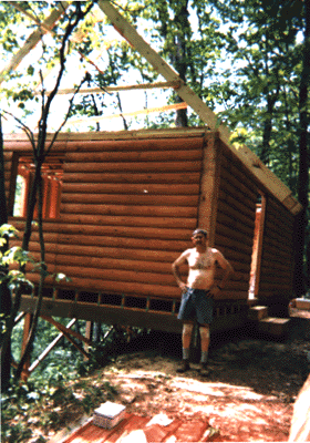 So here was the cabin by the end of Day 2. Openings for front door and windows looking out over the bluff/river scene.