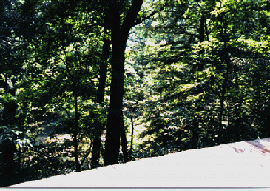 So here is the view off the porch. There is a bluff immediately below, and a river just beyond.