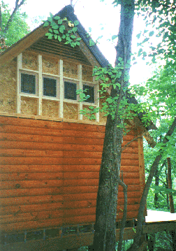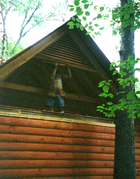 The loft is closed in and cozy. Now let's finish the closing in of the cabin by building the eave in the open area of the cabin.