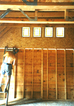 The eave in the open area was harder to access than in the end with the loft. A scaffold had to be built to allow access to the peak for installation of the vent.
